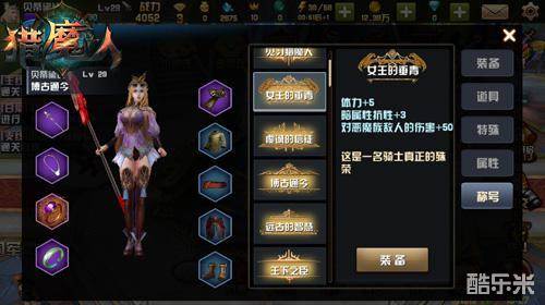 当我们装备上“女王的垂青”称号后,可以使体力+5,暗属性抗性+3,对恶魔族敌人的伤害+50。这是一个很有针对性的属性加成,适合在通关那些恶魔和暗属性伤害比较多的副本,比如地下隧道和墓园周边的几个副本。