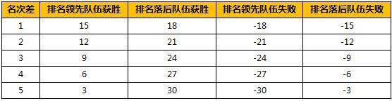 3、积分规则:挑战名次相差大的家族将获得更多的积分,最终优胜名单将以整个赛季家族的总积分来计算。每个家族可以挑战比自己高5名到低3名之间的其他家族,并且在胜利/失败后获得/扣除如下的分数(前20名的家族如果挑战其他家族失败,所扣除的分数将为原来扣分的两倍)