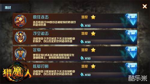 在西方魔幻ARPG手游《猎魔人》中,玩家可以在战斗菜单中接受多达30项的挑战任务,每完成一个挑战任务都可以获得经验和魂石奖励,对于新手玩家来说非常实用。而且通过完成挑战还可以快速了解游戏中的不同玩法,可谓一举两得。今天我们来介绍一下这些挑战的名称和具体要求: