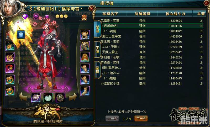 l逍遥世纪l的装备一件一件用上了黄金精源,属性也越来越高,战斗力越来越强。他一直坚持法攻职业,这让他成为《御龙在天》法攻战斗力最高的玩家,与同为十八星的其他玩家作战的时候,站在法攻顶端的他,能够给予对方致命的打击,让他们不敢轻视法攻职业。