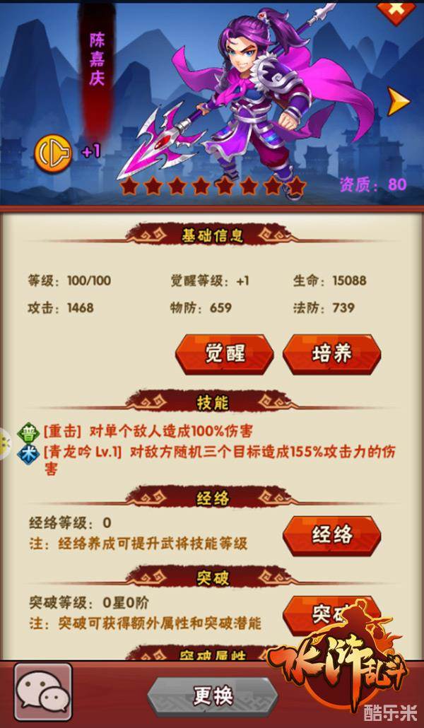 武将的基础提升主要分为以下几类:升级、培养、觉醒、经络、突破。
