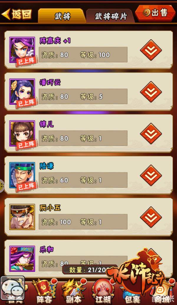 获得了武将之后,我们就要对他们悉心培养啦啦。