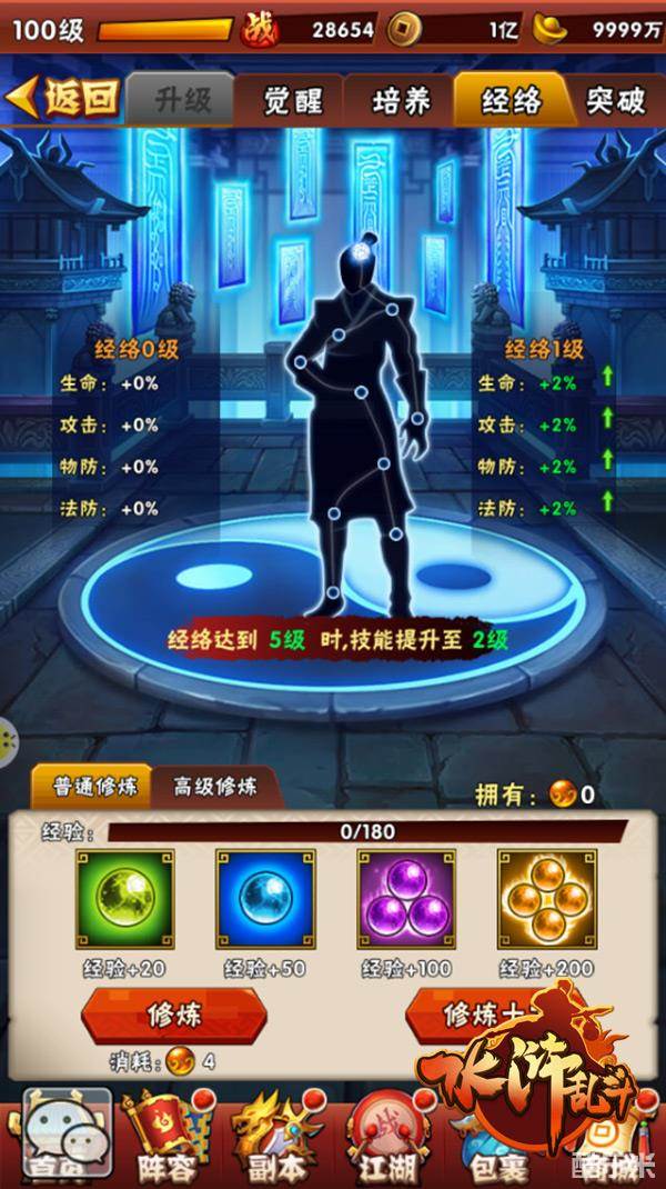 习武之人的经络也将影响其战力!使用经络丹可对武将的经络进行升级。经络升级也可对基础属性进行提升。