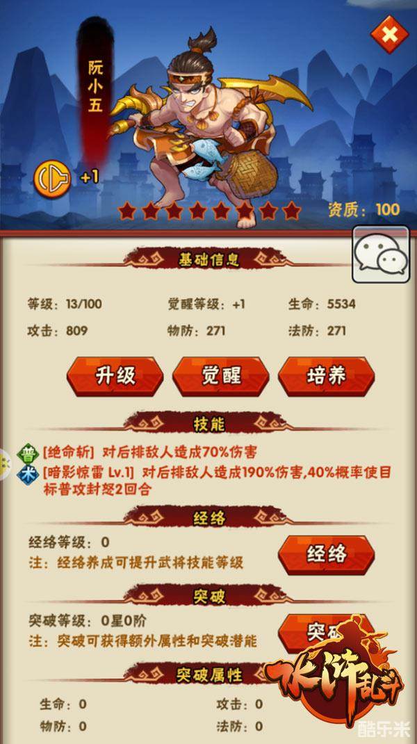 《水浒乱斗》典藏橙卡武将-阮小五介绍