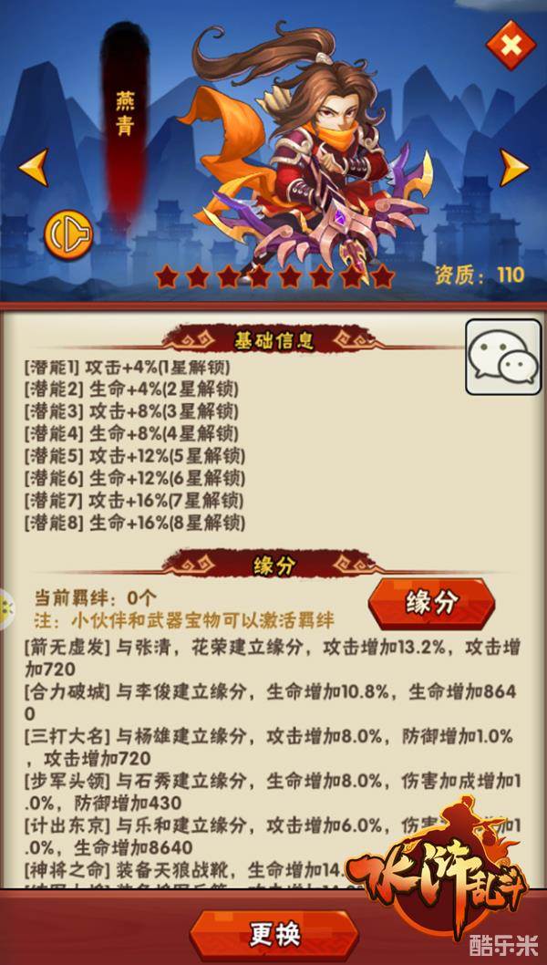因此,水浒乱斗中的每个武将都会有一段或几段属于自己的“缘分”。