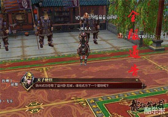 城池战结束之后将进行全服通告--“天子使臣:某某州成功夺取了某某州某某(城池地名),谁将成为下一个猎物呢?”