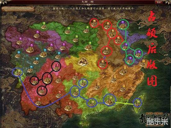 在全服通告之后,所有玩家均可以点击查看九州一统地图,战败国城池并入战胜国版图,版图颜色为战胜国颜色,并且信息显示为战胜国占领,失败方版图则少一座城池。