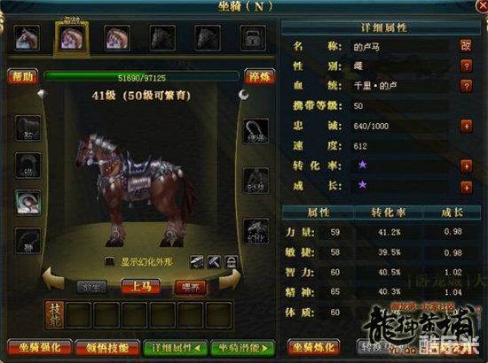 在御龙在天中,小伙伴们得到的第一匹坐骑,是从声音嗲嗲的志玲姐姐手里得到的萌萌,萌萌虽然是女神赠送,但属性很低,当我们达到50级时,就是时候更换一匹更好的坐骑了,那么怎么样找到一匹适合自己的坐骑呢,今天我们就来聊一聊。