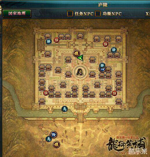 接下来御龙夫人教你有两座门的城池的打法!图中这座城池是庐江,看似与其他的城池没什么两样,但是它的左上角和右上角各有一个“旗”字和一个“驿”字,这代表着左边的是内一门,右边的是内二门。当中间BOSS的血量到达一定界限,不能被输出的时候,只有将内一门和内二门打破并送达帅旗车,才能继续攻打BOSS。所以,一旦遇到这样的城池,必须学会先侦查,事先安排专人打门,以加快夺城进度。
