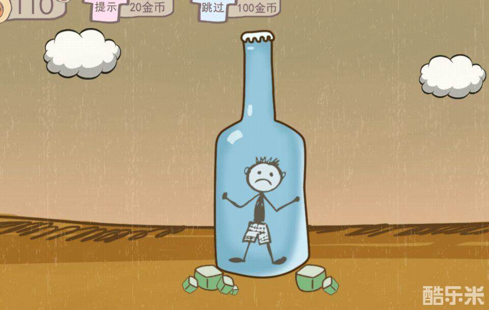 这一关其实相对来说比较简单,方法就是玩家使劲的摇晃手机把玻璃瓶摇坏掉,就是用这种方法把小人解救出来的~