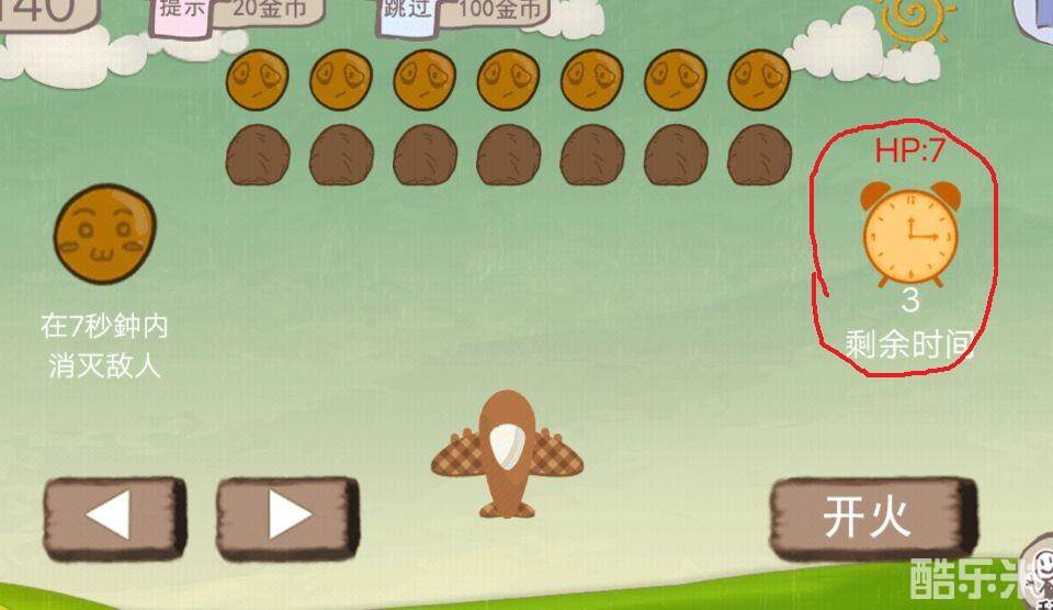 我们这关游戏的要求是让我们7秒钟内消灭所有的敌人,我们操作了一下发现靠人力是不可能完成 的!