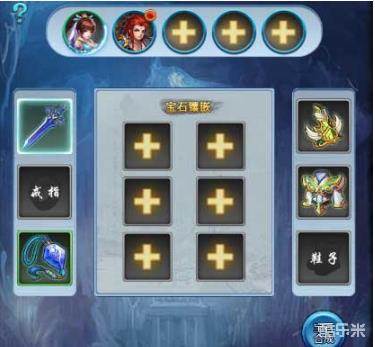 这个是宝石镶嵌的主界面,点击想要镶嵌的装备进行镶嵌。成功镶嵌的宝石会出现在中间的加号的位置。