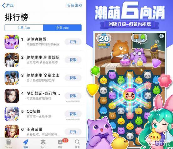 作为腾讯天美工作室群《天天爱消除》原班人马匠心打造的第二代消除产品,《消除者联盟》手游突破了以往的四向消除玩法,将更具魅力的独创六边形消除带到了玩家面前。游戏还结合了激萌的时装系统、炫酷的3D大地图、激燃的PVP排位对战、趣味的周赛活动等,使玩家们收获了“越消除,越幸运”的美妙消除体验。正是因为如此卓越的游戏品质,《消除者联盟》手游在3月27日上线当日,即登上了iOS免费榜首,并于3月29日获得“苹果新游推荐”。