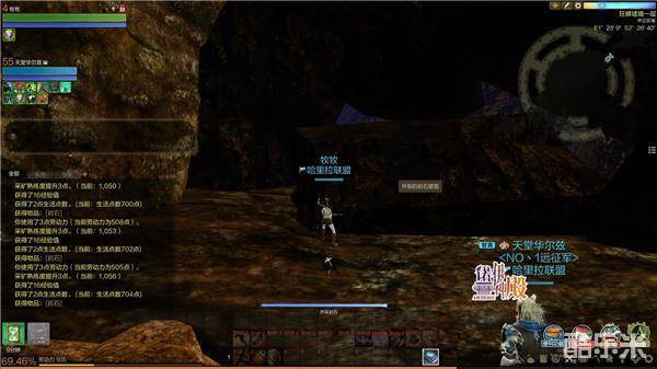 然而开采矿洞是有成本和风险的。首先,需要一共消费3000劳动力把矿洞的岩石壁障挖开,矿洞里面才会刷新稀有矿和发光的亚纳矿堆。岩石壁障没挖开里面是一个矿也不会刷新的。岩石壁障挖通之后,矿的刷新持续4小时,4小时之后,矿洞口就会被岩石重新封闭起来,然后矿不再刷新。其次,这里是非安全区,不管是你在挖岩石壁障,还是在矿洞里面采矿,都很有可能遭受敌对玩家的袭击,有时候同族的玩家也可能进来抢矿或者开强制攻击杀掉你然后掠夺你的资源。因此,这里可不是一劳永逸的地方,而是弱肉强食的杀戮战场!笔者在这两个矿洞里可是经历了不少的战斗。