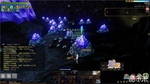 首先,笔者先给大家讲解一下这两个可以称之为宝藏的矿洞,里面到底会有什么资源。当挖开封在洞口的岩石壁障,矿洞里面就会随机刷新稀有金属矿和发光的亚纳矿堆。与东西大陆矿场挖的稀有金属矿不一样的是,矿洞里面所有的稀有金属矿(如金、银、铜、源晶矿、水晶、黄玉等等),采集一次都是需要消耗25点劳动力。当采矿熟练度达到5W的时候就可以通过亚纳矿堆挖采亚纳碎石。在外面挖一个亚纳矿堆可以得到一个亚纳碎石,但是需要消耗50点劳动力;而在矿洞里面挖采一个发光的亚纳矿堆则可以得到两到三个亚纳碎石,并且同样是消耗50点的劳动力。相比外面,在矿洞里采集亚纳碎石收益大大提高。