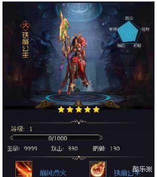 这个就是铁扇公主的介绍界面了,可以看见五芒星铁扇公主的单挑是满的,群战差一点满。这就是意味着铁扇公主就是单挑的女王。