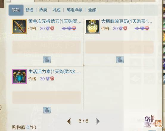 第三种方式:购买商城道具大瓶咩咩豆奶来恢复劳动力。点开游戏中的商城,热卖。就看到大瓶豆奶40点劵一瓶。点开限量,然后翻到第6页,也可以看到每日20点劵购买一瓶大瓶豆奶。除此以外,运营商会时而会在商城出现每个账号限购一次的折扣豆奶捆。每瓶豆奶能恢复1000点劳动力,当你的劳动力距离上限不足1000时,无法使用商城豆奶。豆奶无CD,可以连续喝,所以是很多玩家的最爱,不管是开袋子还是做装备,你都需要它。