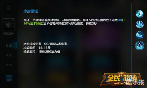 3技能【冰封领域】改为选择一个区域制造冰封领域,召唤冰雪爆炸,每0.5秒对范围内敌人造成90/150(+0.14法强)法术伤害并降低20%移动速度,持续3秒(pve闯关中大技能持续10秒);