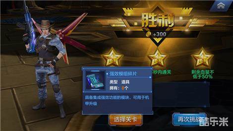 通关除了奖励大量金币之外,本次随机掉落的是护盾模组,是用来提升机甲性能的多功能护盾模组。运气好还能掉落其他组件材料。小编今天是没有这样的运气了,那就祝各位玩家们材料滚滚来。