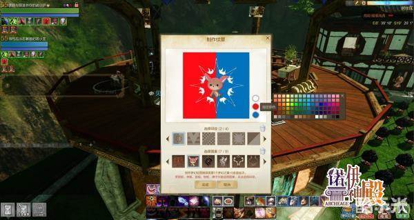 接着我们F键打开纹章制作台可以看到,有一个选择印纹和选择图案,大家可以根据自己的喜欢,来搭配背景和图案,而且在印纹选择好以后,还可以根据自己喜欢的色彩来进行搭配。背景印纹一般是由三个颜色或者2个颜色组成的哦。还有在图案选择的下面会提醒大家,制作梦幻绘图模具需要用到一个梦幻之翼和5金蓝颜贝。同时提醒大家,制作贸易船、快艇、画幅、相框的时候,绘画出来的东西只能适用用图案,而背景印纹是不适用的。