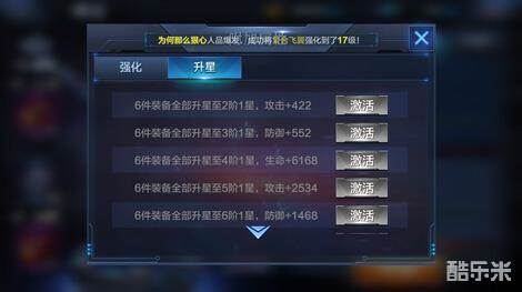 多件装备同时达到一定的星级就可以激活升星系统的隐藏属性了,可以大大增加玩家的属性。