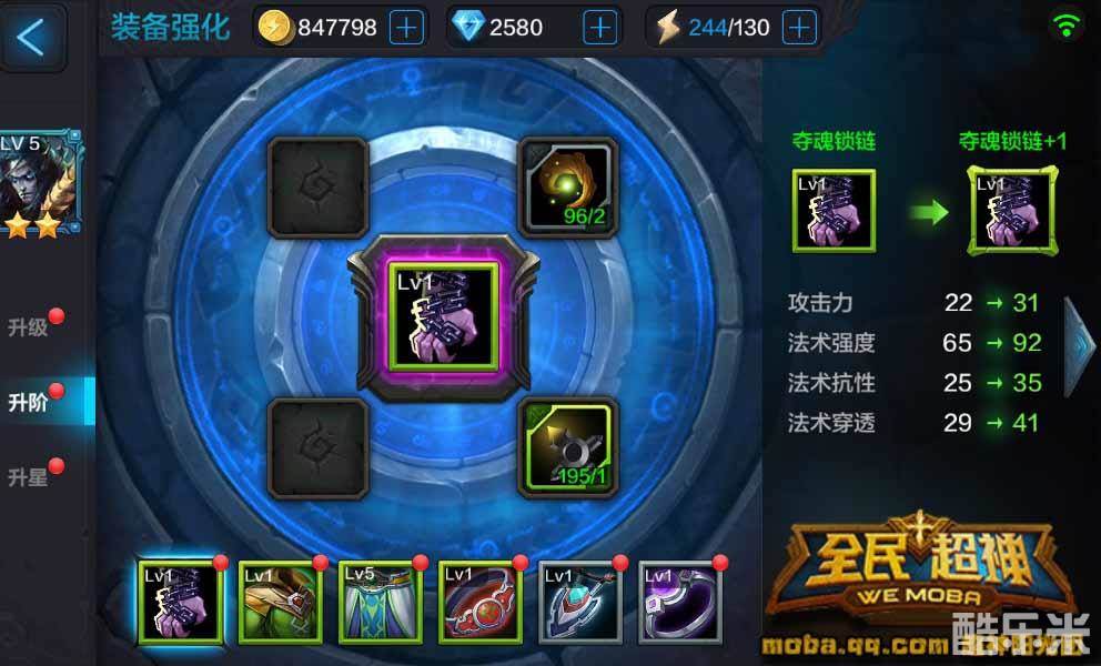 冥王哈迪斯所需要升阶装备使用的材料主要来自闯关掉落,与升级顺序一样,升阶先升级武器,其次项链增加护甲穿透,然后衣服裤子腰带戒指依次升阶。装备阶级越高属性越强。