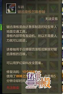 使用1个木质滑板召唤卷轴和1个在商城使用2888点券购买的齿轮原动机在艺术品工作台可以将木质滑板召唤卷轴升级为锯齿滑板召唤卷轴。
