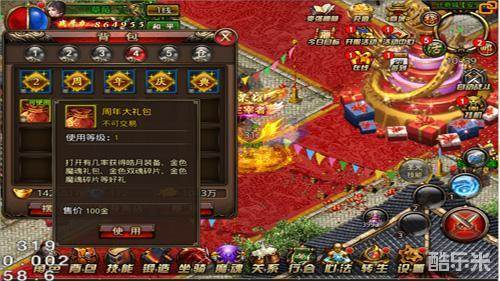 据了解,在二周年庆期间,全区服玩家在比奇城雕像前的蛋糕附近,使用烟花道具之后就能获得海量经验,每天都能有1次机会!所以,如此轻松便可以升级的活动当然不能错过。而且,玩家每日活跃度达到300,就能领取欢乐球道具。集齐12个欢乐球,就可以在周年庆使者NPC处兑换“热血铸传奇”永久称号哦!