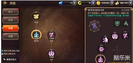 剑皇属于近战输出,那么相应的技能选择肯定要偏向于近战,因此主动技能可以选择五个EX技能,分别为三连砍、切骨之刺、挥砍姿态、直线冲击以及惩罚攻击。其实选择EX技能的原因很简单,因为技能在经过EX的加强后,不论是攻击范围还是伤害都得到了增加,而且这五个技能还非常适合剑皇PK使用。至于特殊技能可以选择无限之刃,至于增益技能选择就更加简单了,因为就只有两个,分别为爆发点和勇敢。