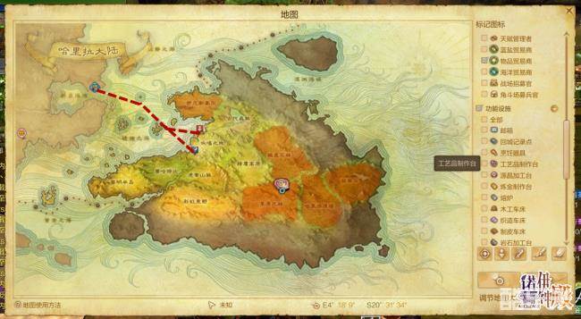 路径三是从咏唱之地到索兹里德半岛。咏唱之地的做货点在左下角,距离出海口较远,所以比较好的出货点是琵琶港的居住点。咏唱之地由于靠海且风景漂亮,是东大陆少有的温带气,候地图还是内陆跑商的重要中转点,成为了几乎所有生活玩家的理想居住点,所以居住地资源实属难得。但是由于咏唱之地是安全地图,所以安全性较路径一会高一些,而且收入也较路径一多一点,为8个稳定的石盐碎片。当然相对于路径二,收入少了一些,但是其运货路径也几乎缩短了二分之一不是么。