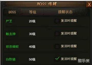 和个人BOSS一个样子,不过挑战难度更高一些,需要更多的玩家一起来挑战,是个拼伤害的地方,不过全民BOSS大家还是要积极参与的,因为个人BOSS只能挑战一次,而全民BOSS的挑战次数是可以恢复的,当然低级的就不要浪费次数了,可以设置刷新某个BOSS之后进行提醒。