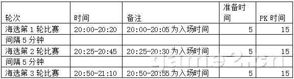 1. 海选赛模式比赛限时20分钟,5分钟准备时间,15分钟战斗时间