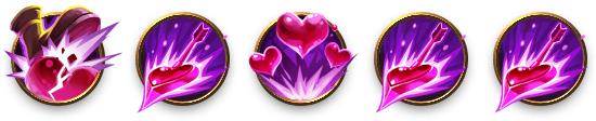 播撒爱心:丘比特放置一颗隐形的爱心,爱心范围内有敌人时会爆炸造成范围法术伤害和减速。爱心需要时间生成,最多携带3个爱心。
