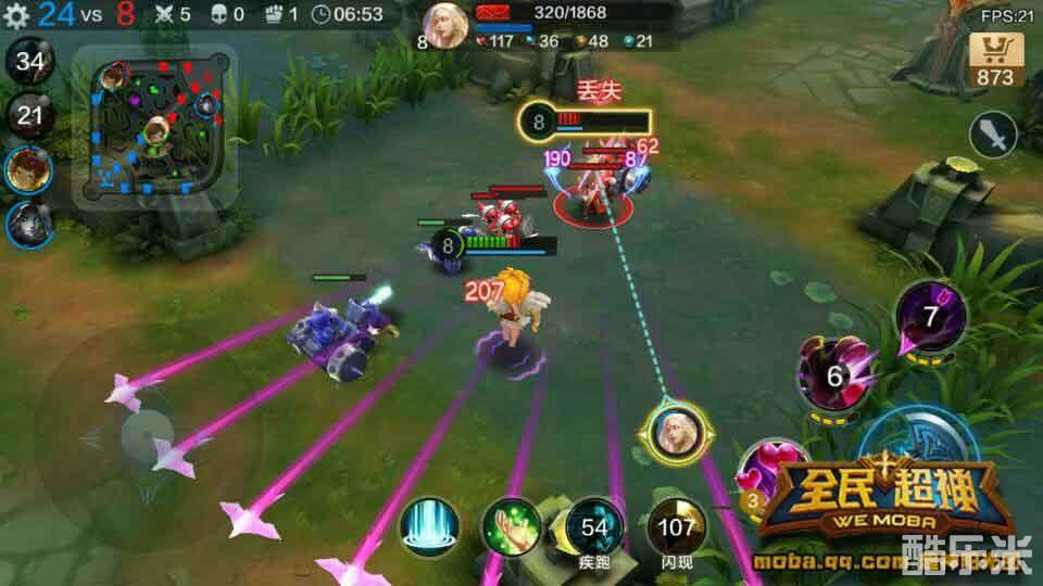 技能分析:这个被动可以随着长时间的不动来进入隐身状态,由于《全民超神》中还没有眼位这个概念,所以对于有隐身技能的英雄玩家们会相当头疼,在加上没有反隐的有效方法,小爱神在对战中可以轻松的埋伏对手!
