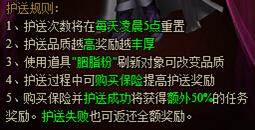 不过,高收益的同时也伴随高风险,该时间段也会有很多人打劫,能不能保护好美娇娘就看各位少侠的实力了,担心被劫在给大家介绍个好东西,保险!购买保险,若成功护送多得额外50%收入,若失败,不用急,也可以获得正常奖励哦!