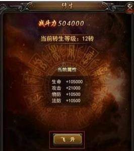游戏中玩家想要飞升,必须要转生等级提升到12转才可以飞升。换句话话说,就是玩家满级了之后才可以飞升。当玩家转生到了12级后就会出现飞升的功能键按钮,点击【飞升】就可以进入飞升的界面了。