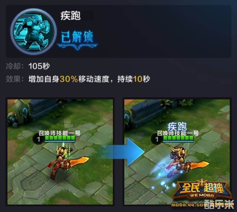 疾跑:疾跑作用类似于闪现,都是为了防止gank被抓,或者为自己追击敌方逃生英雄提供帮助。