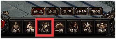 通过主界面的武学按钮可以打开武学界面,在武学界面可以学习并升级强大的技能。