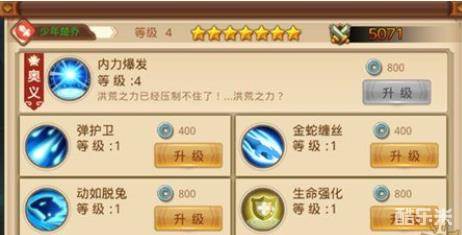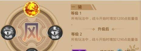 这个是少年楚乔品质达到蓝1时解锁的宗门,可增加战斗开始时的能量值,并且可对其进行升级,升满级数后,不可再升级。