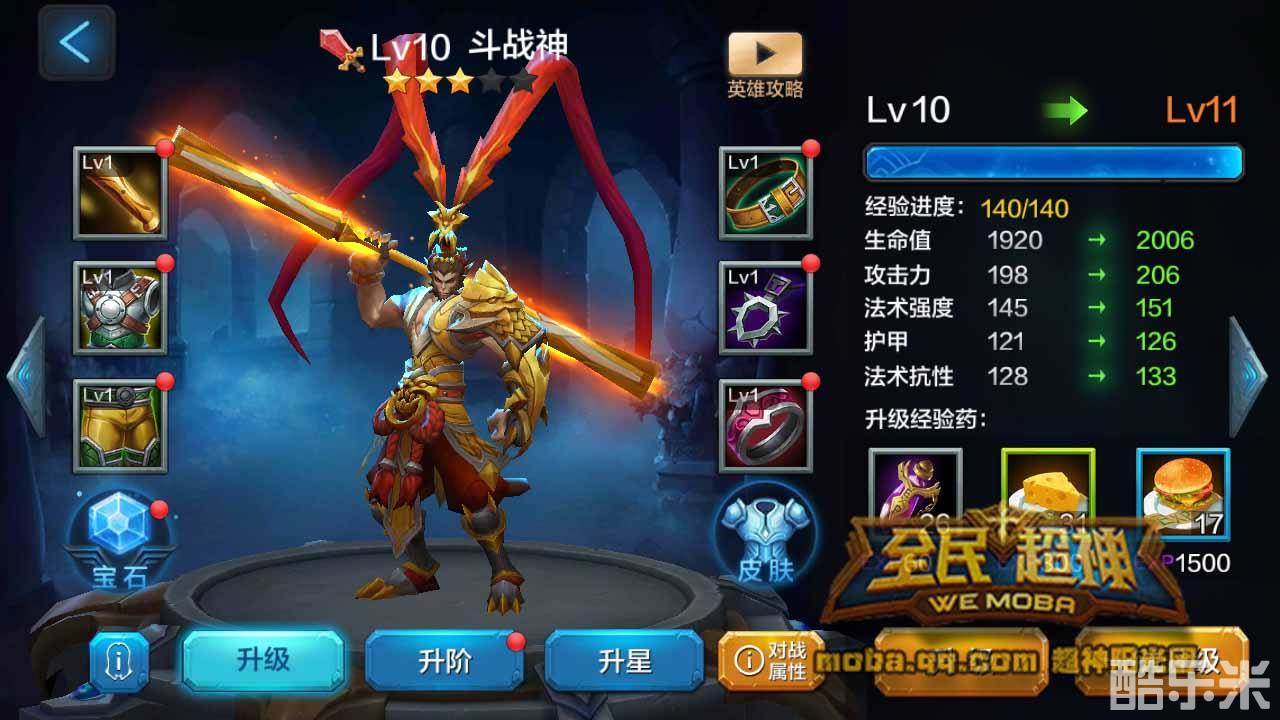 众所周知,英雄等级越高其属性越高,而斗战神升级的方式为: