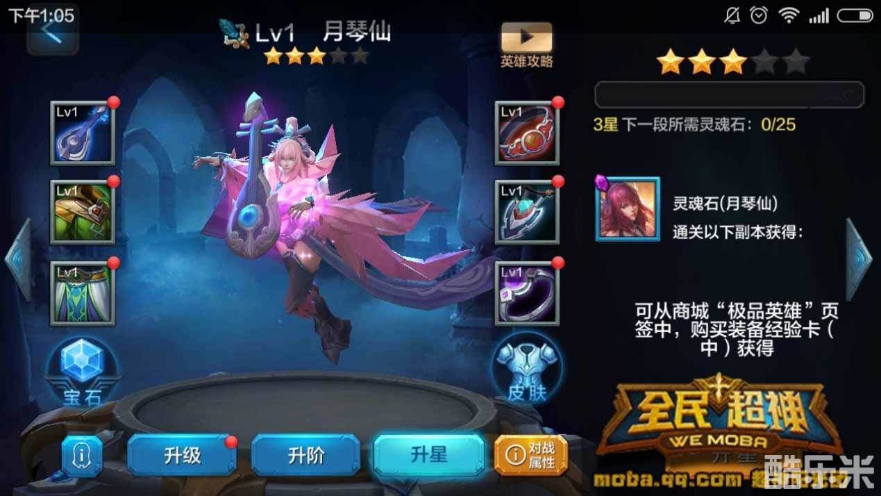 英雄装备升星主要通过用升星石升星,而升星石主要获取途径是从挑战、竞技商店、每日任务、商城购买装备经验卡抽奖获得,土豪玩家们现在还能从商店的特卖礼包中直接用钻石购买获得。因为升星石获得相对比较困难,大家在升星的时候,如果想增加月琴仙的攻击就优先选择升星武器和戒指;如果想让月琴仙的生存能力更强,则可以优先选择升星衣服裤子和腰带,这个全看大家的选择。