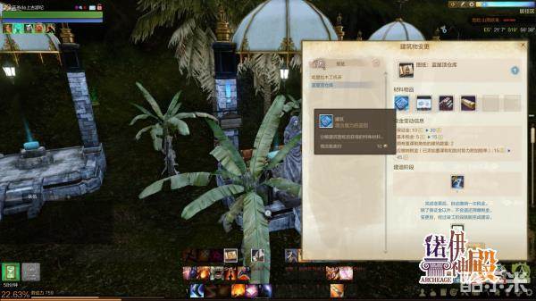 选择好合适的地段先将加工台制作完成,竣工后,靠近加工台点击“F”键查看加工台信息,在信息框最下面点击“建筑物变更”按钮,就查看加工台改造所需的材料了。
