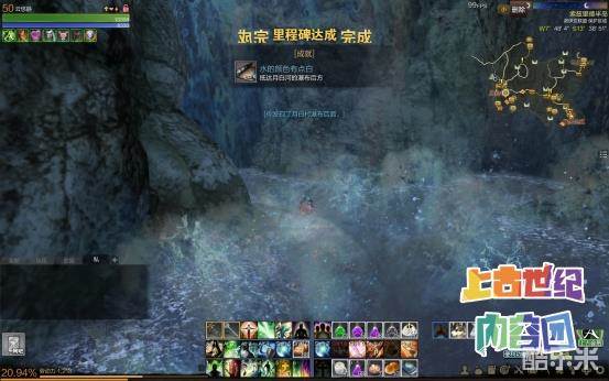按这指引某洛来到月白村的北部的月白河处,村子的背后就有一挂瀑布,在瀑布周围巡视一遍并没有发现奇特之处,于是某洛跳进瀑布中,仍然没有发现吉尔尼斯之剑,反倒跳出一项成就:水的颜色有点白,抵达月白河的瀑布后方,这也算是意外收获吧。