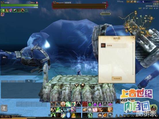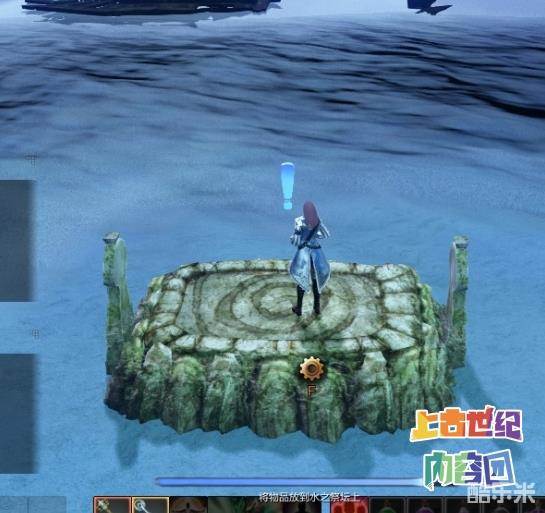 最后就在沉船湾的海边有一个祭坛,祭坛上有个齿轮的按键,按F就会将包里的任务道具放到水之祭坛上并召唤出来一只12级大型水怪:狂怒波涛。打死这只精英怪就得到了发条猫的箱子。