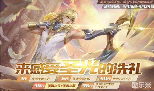 5. 累充送英雄:全新福利到!4月18日-4月24日,为庆祝新英雄深渊之弓-格利德上线,累计充值30元额外赠送深渊之弓-格利德英雄和圣光之箭-格利德皮肤。还有大量魔晶、橙色芯片、合金赠送!仅限一周,不要错过!