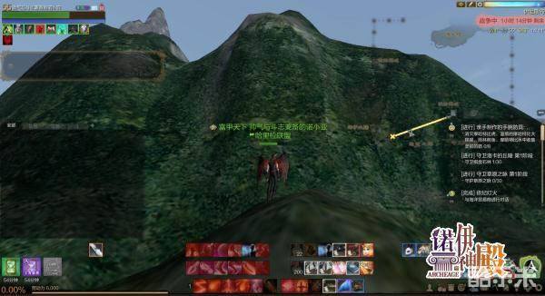 沿着左侧山麓一路奔跑,才跑了一段山体就迅速变得陡峭起来,在山脚处看的山麓一副平和舒缓的模样果然是骗人的!直接从这里继续向上难度非常大,这时候我们看到右侧山体有落脚处,似乎可以转变一下登山路线,从左侧山麓飞到右侧山坡上,咱们从右侧的山麓继续向上。