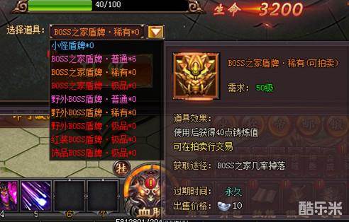 野外BOSS盾牌·稀有(50点铸炼值),可在拍卖行交易。