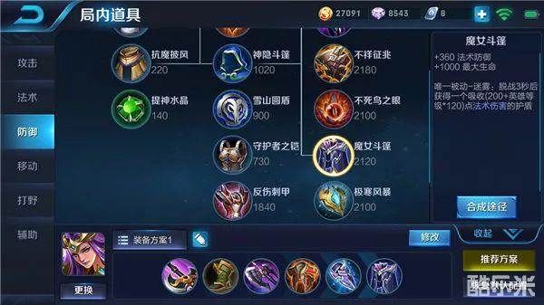 逆风出装:巡守利斧、影忍之足、暗影战斧、红莲斗篷、冰痕之握、魔女斗篷