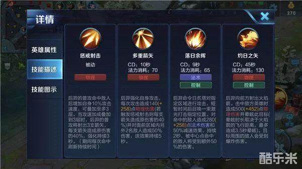 解析:后羿强化自身攻击,在一定时间内每次攻击将会对敌方单位造成额外的物理伤害,但若触发其被动技能,即可同时对攻击区域内的三名敌方单位进行普通攻击,但单体伤害量会有所下降,但这依然不能阻碍后羿在团战中打出成吨的输出。