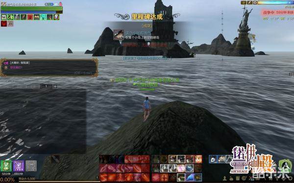 在进入咆哮岛养殖场海域的时候我们会经过一个刚刚露出海面的小岛,有了之前独立岛的经历我们本着宁可错不能放过的原则上岛试试,果不其然这里也是个探险成就点:这个小岛有杀气!在某个小岛上眺望咆哮岛。也许在咆哮岛附近的海里还有其他有趣的地方,我们先在海边逛一圈看看吧。